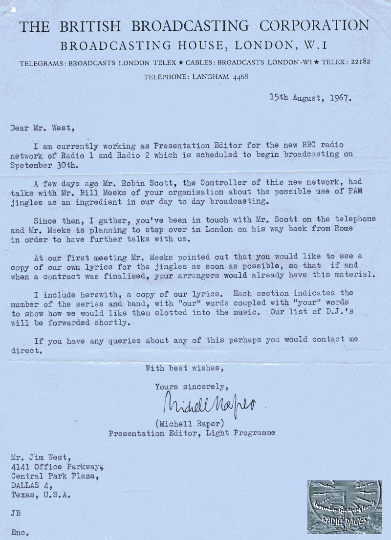 BBC Radio One/Two's Jingles between 1967 and 1974, I will add