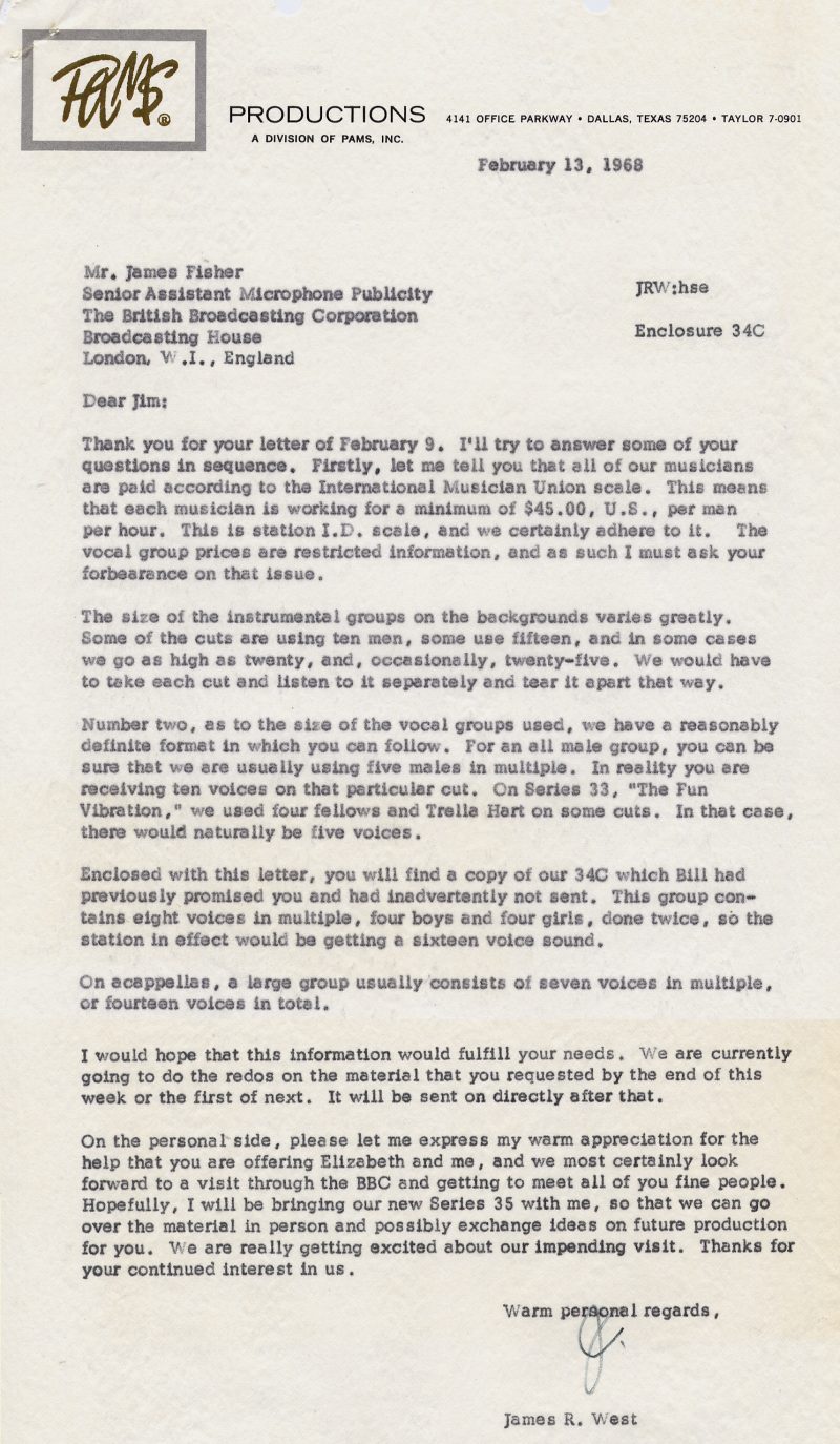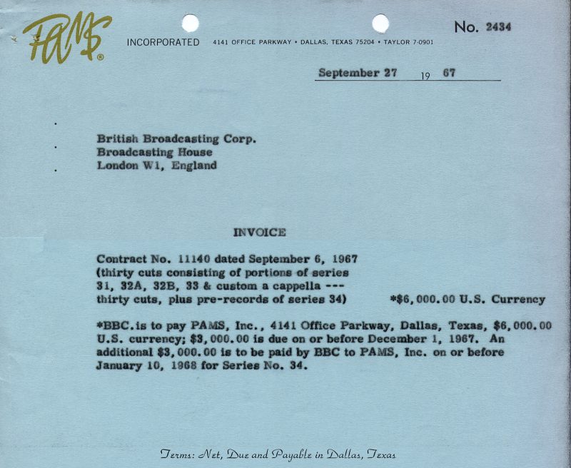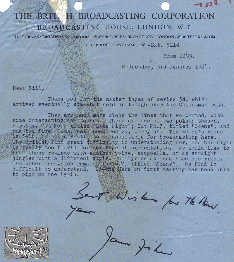 correspondence between the BBC & PAMS, regarding the lyrics